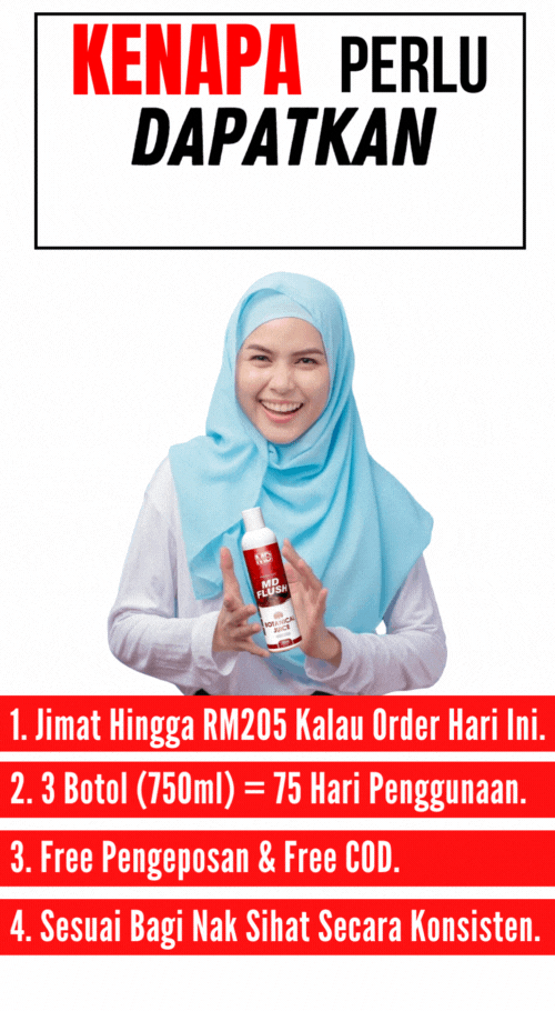 Penasihat Kesihatan MD menyarankan untuk anda mengamalkan sekurang-kurangnya 3 botol jus MD Flush supaya masalah anda anda dapat diselesaikan dengan cepat hingga ke akar umbi.